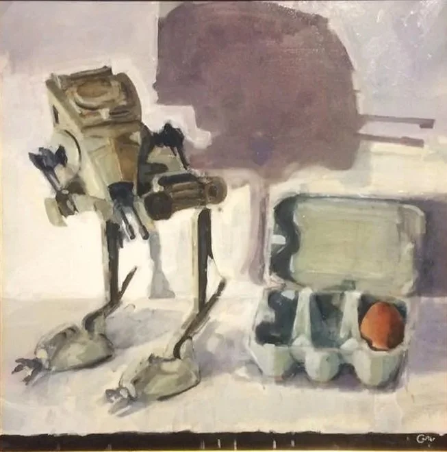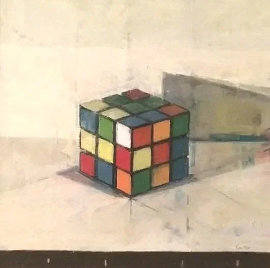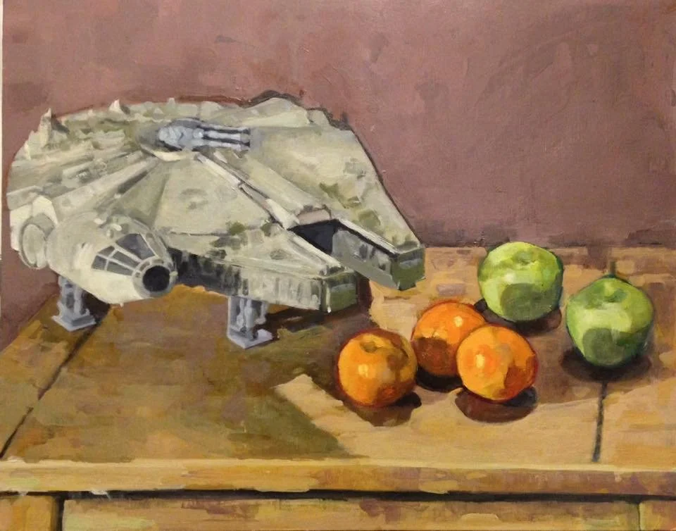 Rubiks cube. Oil on boardPrivate collection Chicken and the egg. Oil on boardPrivate collection Still life with tangerines, apples and millennium falcon. Oil on boardPrivate collection Space hopper. Oil on boardPrivate collection